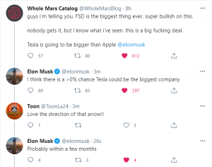 -The billionaire engineer suggested that Tesla Inc could be bigger than Apple in only a few months