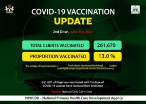 At the moment 261,670 Nigerians who received the first dose have already received the second dose of the vaccine