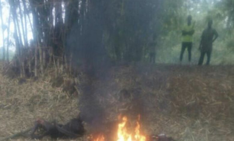 2 Robbers Set Ablaze For Stealing Phone in Imo State(Graphic Images)