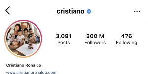 Just a few days after becoming the player with the most goals at the Euro, Ronaldo has reached 300 million followers on Instagram.