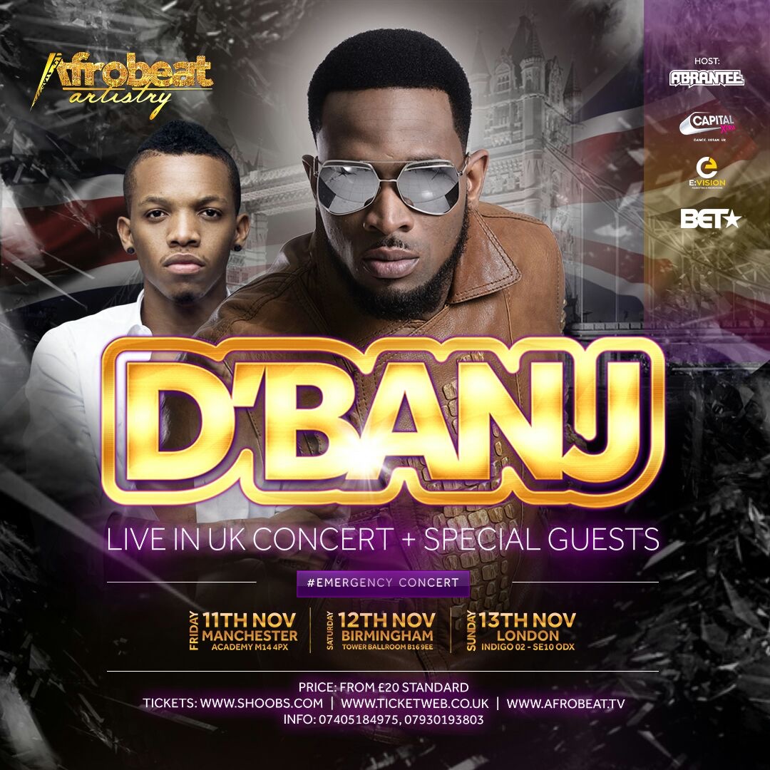 As previously announced, D’Banj’s forthcoming UK tour will see multiple MTV European Music Award, BET Award, World Music Award, and MOBO Award winner headlining at the Manchester Academy on November 11, Birmingham’s Tower Ballroom on November 12, and the Indigo at The 02 in London on November 13, after a four year hiatus from the UK. This is NOT to be missed!