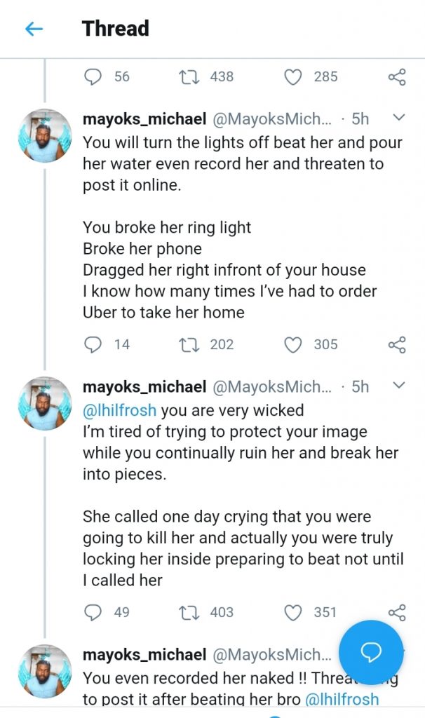 In a Twitter rant made yesterday, Monday 5 October, 2020 by a user Mayoks Micheal, Lhil Frosh was accused of domestic violence against his girlfriend who is a model with the Twitter handle @thacutegerminme