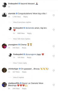 A host of other celebrities also congratulated the musician in the comment section, including Olamide, Don Jazzy, and Phyno.
