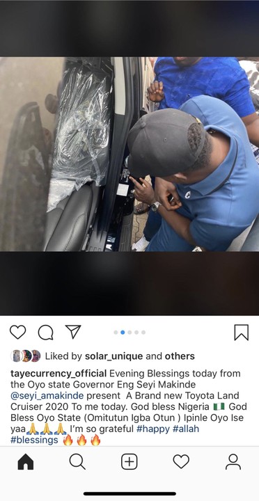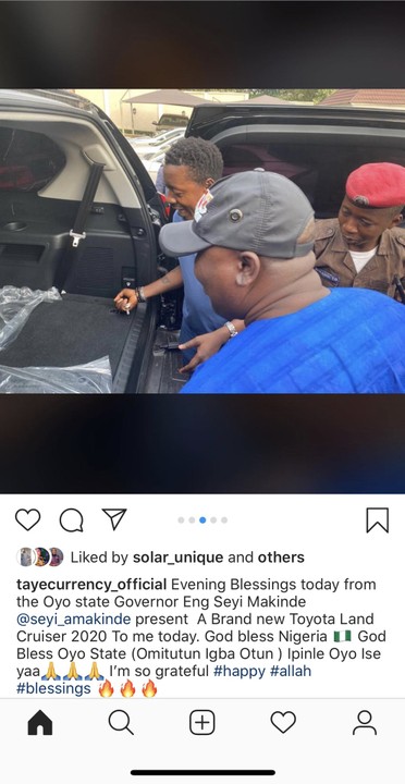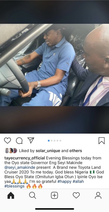 Evening Blessing today from the Oyo State Governor Eng Seyi Makinde @seyi_makinde presents A Brand new Toyota Land Cruiser 2020 to me today. God bless Nigeria, God bless Oyo State. Ipinle Oyo Ose yaa. I’m so grateful.