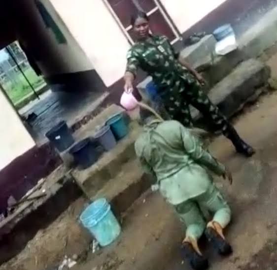 The soldier reportedly bathed the serving corps member with muddy water and smashed a bowl on her during the incident.