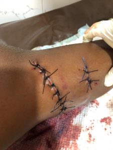 The victim was taken to the hospital after the attack and the injuries were cleaned and stitched before she was discharged.