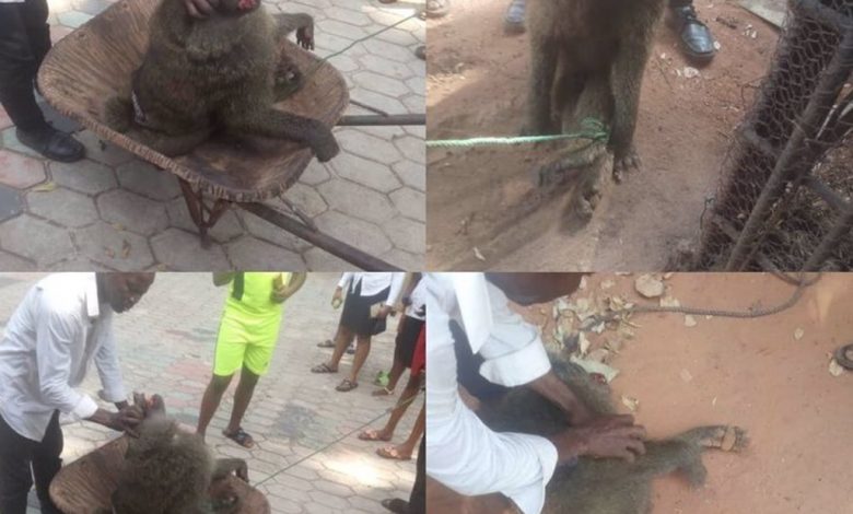 There was complete chaos in a village in Awka, Anambra when a Baboon escaped from its cage.